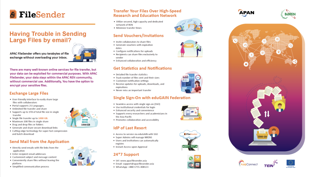 Recognising the growing need for efficient data sharing among academic communities, the heart of this project is the creation of FileSender. An Asi@Connect funded project executed by BdREN with APAN’s support was crucial in developing this platform for the NREN community.