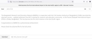HSIA has become one among more than 30 international airports in the world that provide “eduroam” services to the travelers. Forging ahead with this successful enablement of “eduroam” service at HSIA, BdREN is looking forward to enabling “eduroam” service at other international airports in the country such as the Osmani International Airport, Sylhet, and the Shah Amanat International Airport, Chittagong. Then the local airports will be targeted. This is in line with CAAB’s commitment to provide high-speed broadband internet access to the travelers.