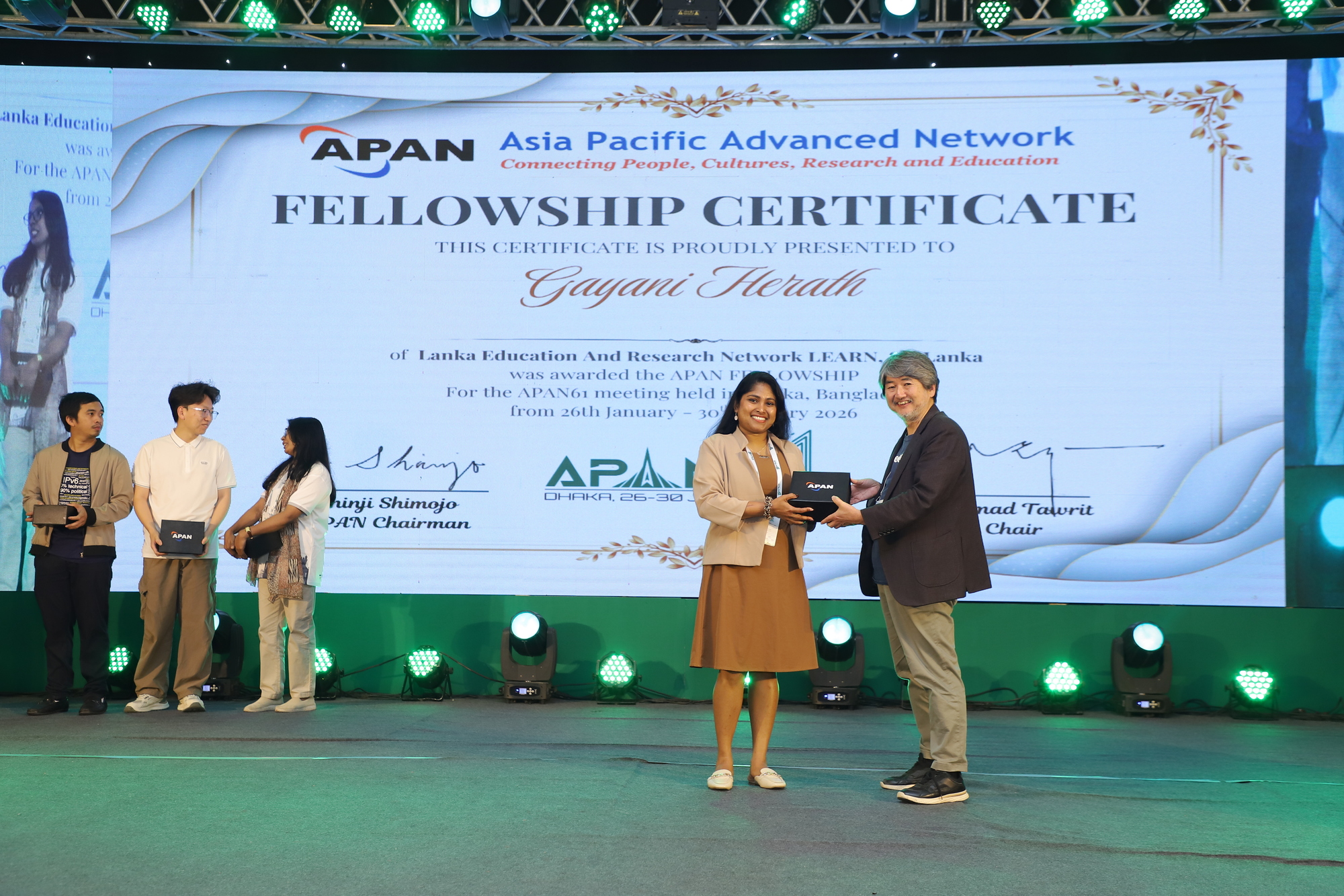 I had the privilege of attending the 61st Meeting of the Asia Pacific Advanced Network (APAN61), held in Dhaka, Bangladesh from 26–30 January 2026, as a selected Fellow. This was not my first engagement with APAN; I previously attended APAN59 in Yokohama, Japan, and participated in the AP-GAINED (Asia Pacific – Generative AI for NREN Empowerment and Development) Working Group as a trainer. These prior experiences provided continuity and deeper understanding of APAN’s evolving strategic direction.